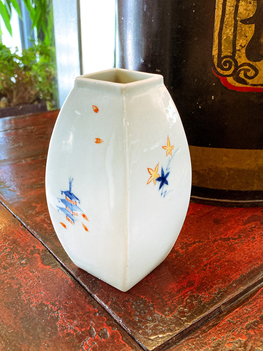 Vintage Hand Painted White Porcelain Bowed Cabinet Vase Japan 1950s