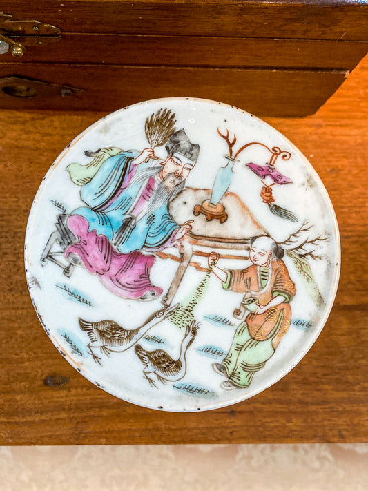 Antique Chinese Porcelain Hand Painted Cylindrical Porcelain Lidded Jar