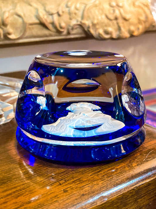 Vintage 1975 Benjamin Franklin Baccarat Franklin Mint Cobalt Glass Paperweight