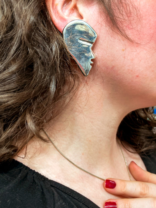 Vintage Frederic Jean Duclos Abstract Profile Face Sterling Silver Clip On Earrings