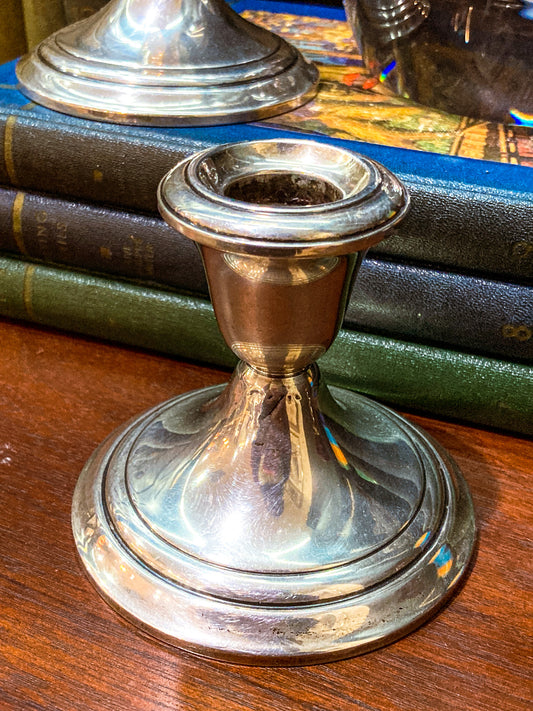 Vintage Gorham Sterling Silver Cement-Filled Pair Circular Candlesticks