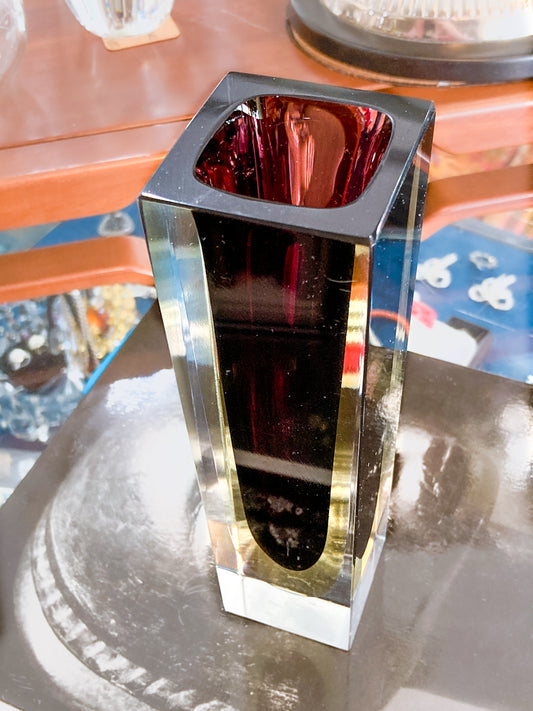 Murano Sommerso V. Nason Italian Rectangular Wine Red Glass Bud Vase