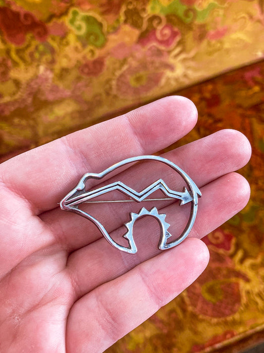 Vintage Native American Pueblo Zuni Medicine Bear Sterling Silver Brooch Pin