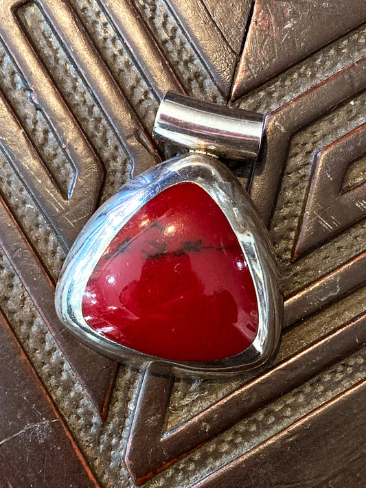 Vintage Sterling Silver Triangular Rounded Red Jasper Stone Pendant