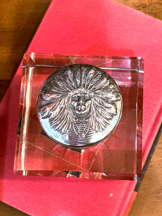 Antique Unger Brothers Crystal Sterling Silver "Indian" Chief Portrait Lid Inkwell