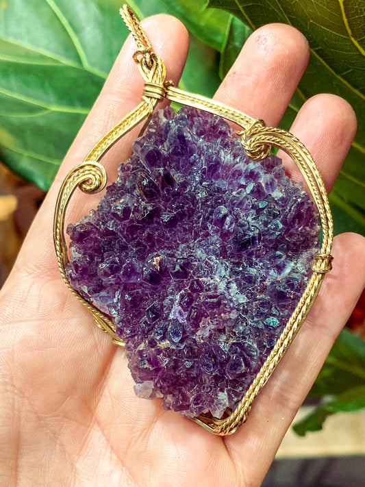 Hand Crafted Gold Filled Wire Wrapped Natural Amethyst Crystal Pendant
