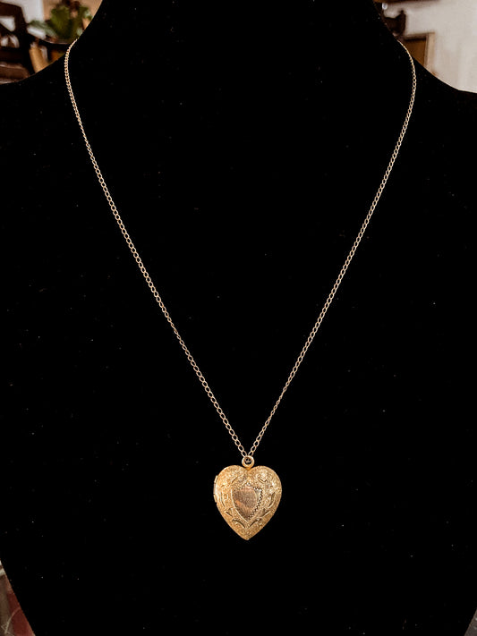 Vintage Gold Filled Engraved Heart Photo Locket Pendant Necklace