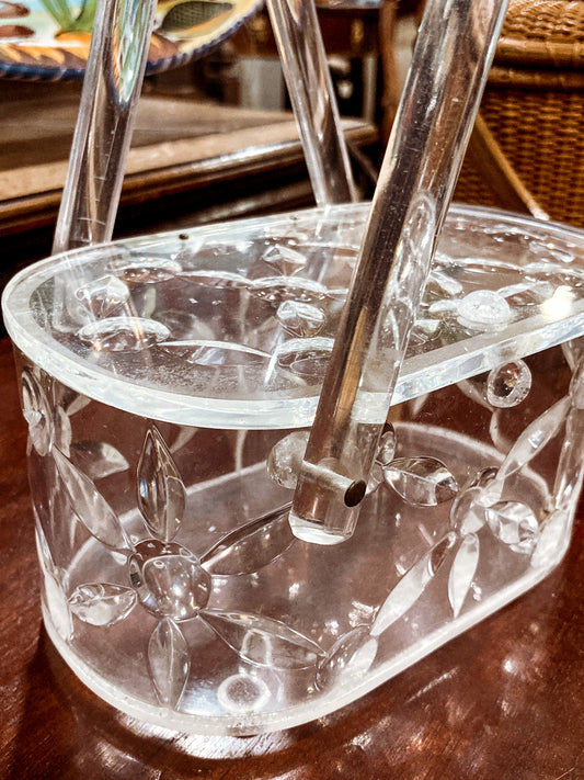 Vintage 1950s Clear Lucite Llewellyn Double Handle Basket Handbag Purse