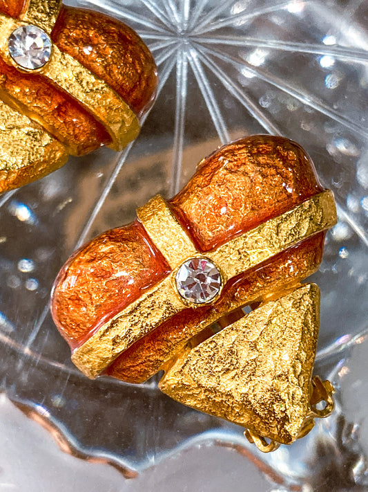 Christian Lacroix Jewelry Red Enameled Rhinestone Gold Heart Clip On Earrings