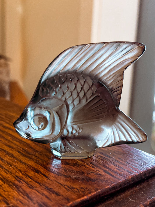 Vintage Lalique France Frosted Grey Crystal Angel Fish Small Figurine