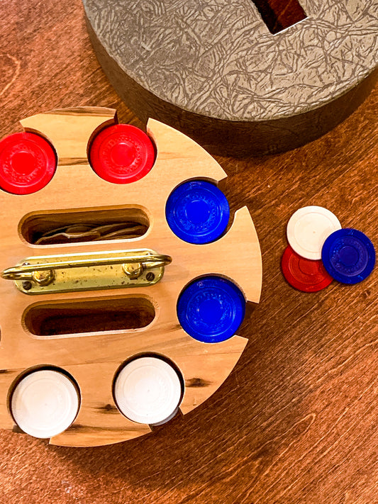 Vintage MCM Lazy Susan Red White Blue Poker Chip Travel Caddy Set