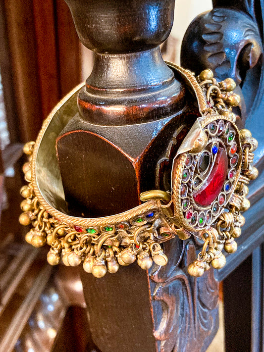 Vintage Multicolor Moon Glass Afghan Kuchi Dangle Jingle Bead Cuff Bracelet