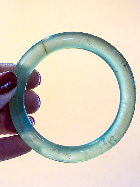 Vintage Natural Polished Translucent Jade Stone Round Bangle Bracelet