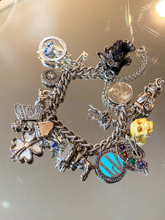 Vintage Sterling Silver Rare Dog, Skull, Portrait, Art, Dance Charm Bracelet