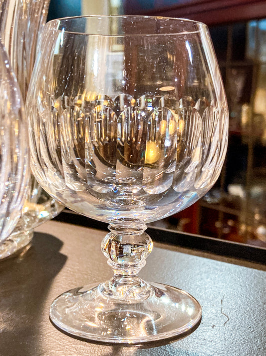 Set of Five Clear Crystal Stemmed Vintage Brandy Snifter Glasses