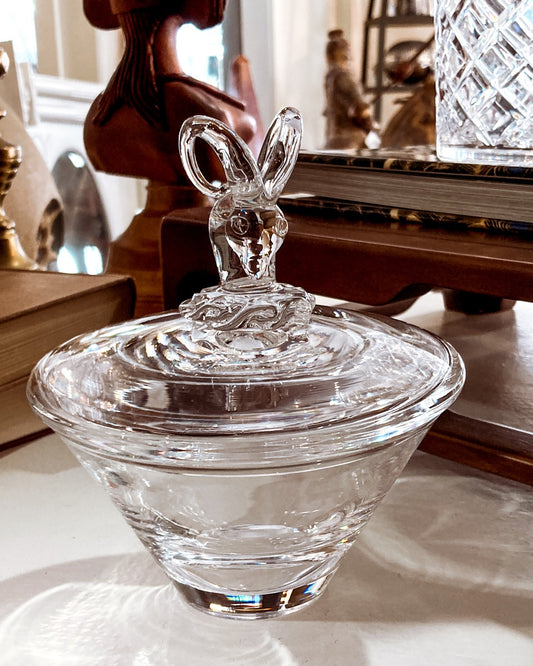 Hand Blown Steuben Clear Crystal Ram's Head Knop Lidded Tapered Jar