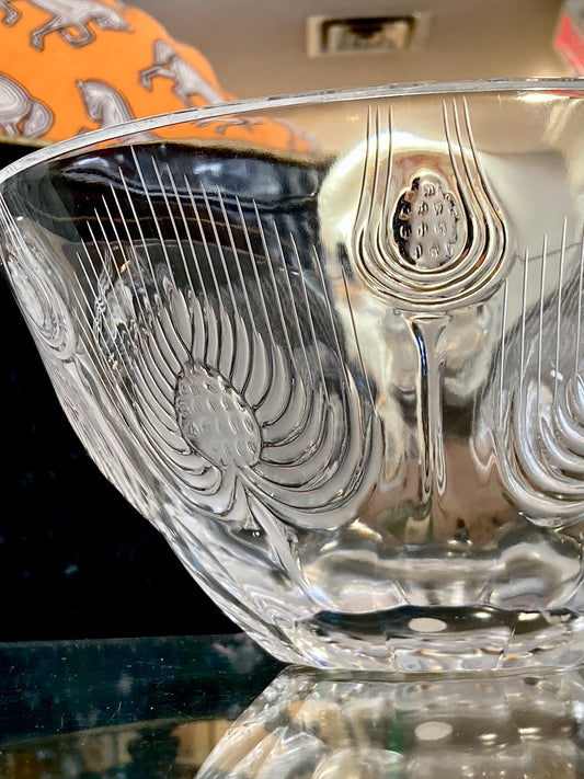 Vintage 1960s Lalique Clear Crystal Thistle Pattern Art Deco Style Bowl