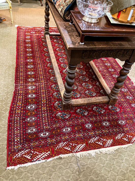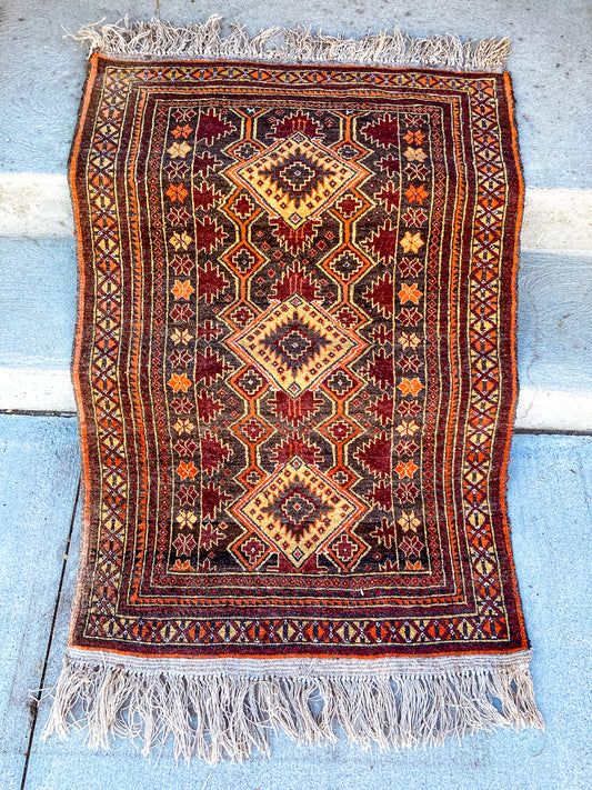 Vintage 1980s Orange Red Fringe 5x3ft Hand Woven Persian Wool Area Rug