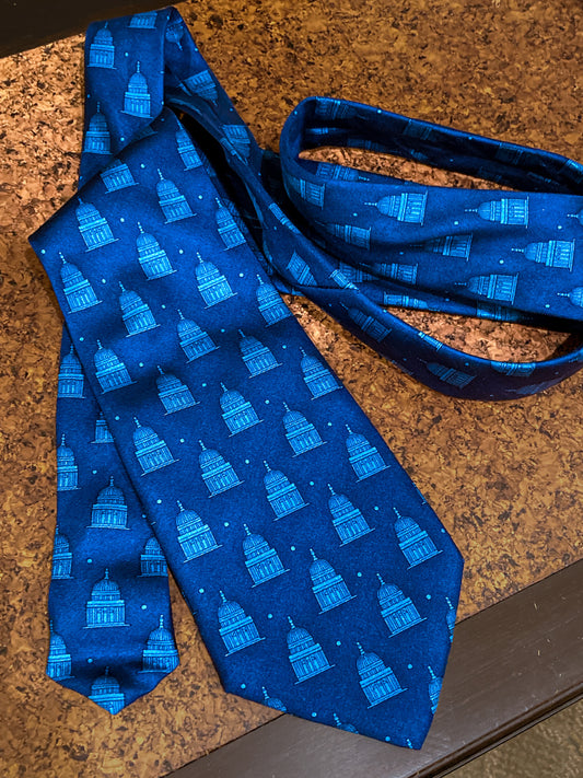 Vintage 1994 FENDI Regali Palazzo Grassi Venice Architectural Italian Blue Silk Tie