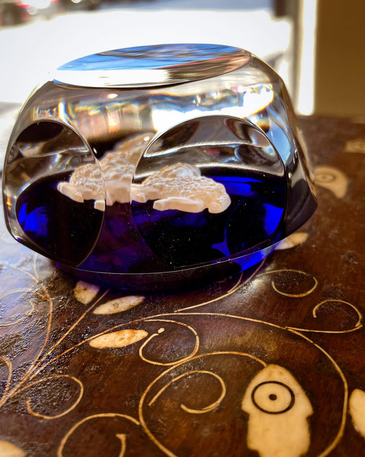 Baccarat Cobalt Crystal Sulfide Ram Aries Zodiac Sign Paperweight