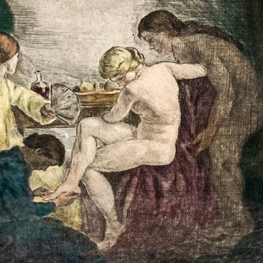 Antique Square Neoclassical Aquatint Eccentric Pedicure Framed Print