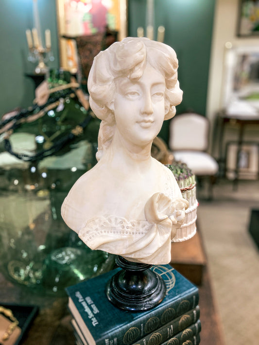 Antique Hand Carved Italian Marble Female Bust by Adolfo Cipriani (1880-1930)