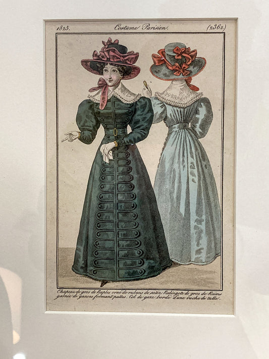 Framed Antique French 19th Century 1825 Parisian Fashion Plate Print