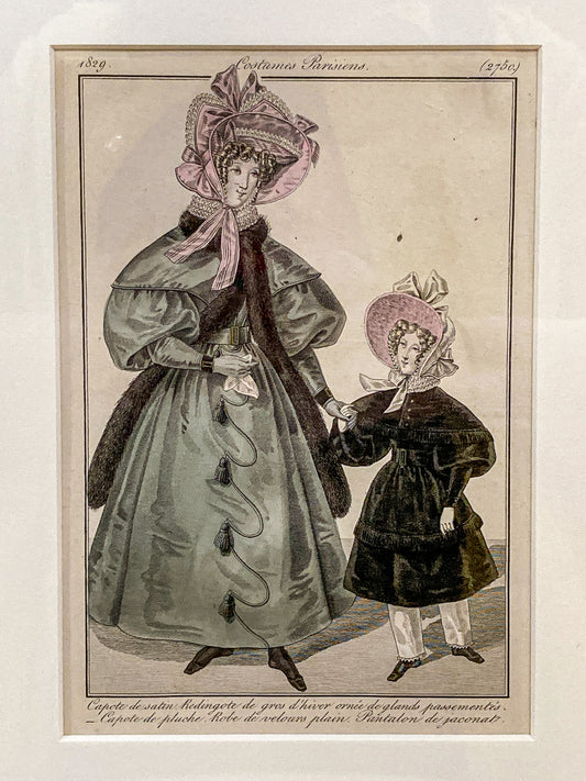 Framed Antique French 19th Century 1829 Parisian Fashion Plate Print