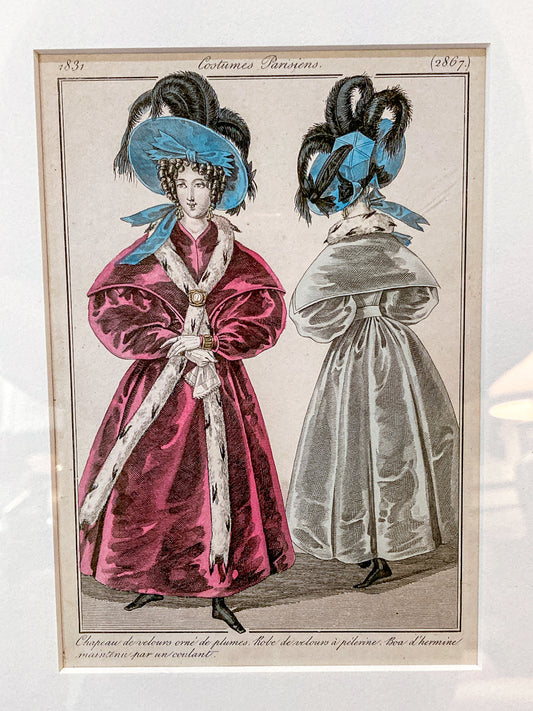 Framed Antique French 19th Century 1831 Parisian Fashion Plate Print