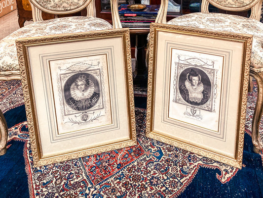 Pair Antique 18th Century Royal England Scotland Queen Framed Prints