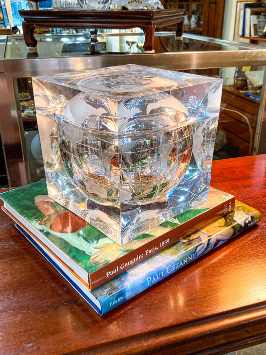 Vintage 1960s Alessandro Albrizzi Clear Lucite Globe Ice Bucket Box