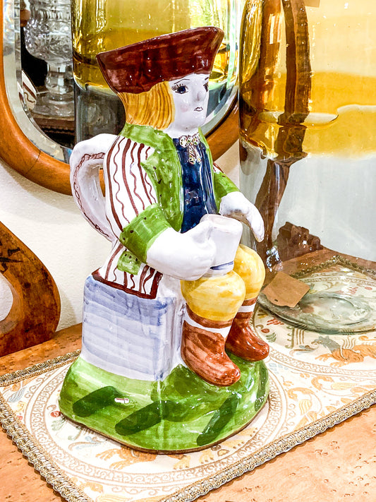 Repro 17th Century Antique Portuguese Sailor Figural Toby Ceramic Folk Pitcher