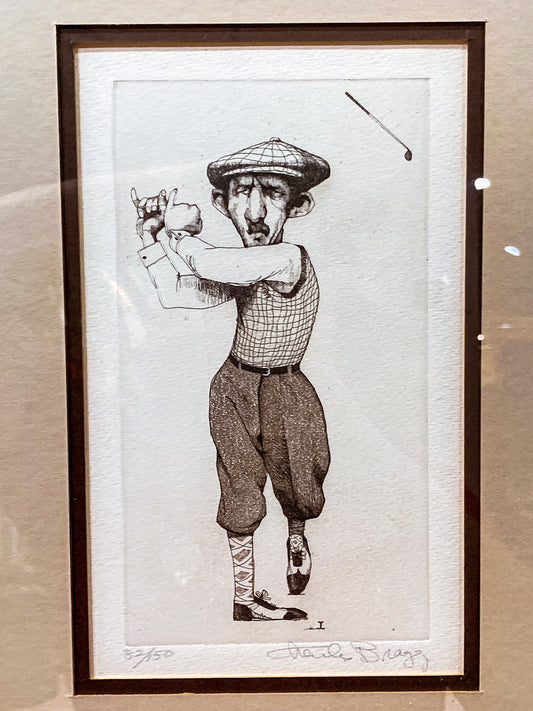 Stylized Golfer "Francis Ouimet" Charles Bragg (1931-2017) Framed Etching Portrait