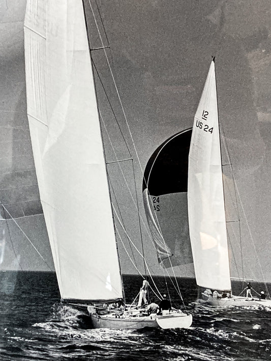Vintage Stanley Rosenfeld Black & White Sailing Two Boat Framed Photograph
