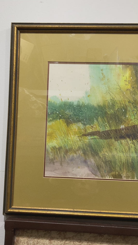 Vintage 1970s Floral Landscape Watercolor Framed Painting