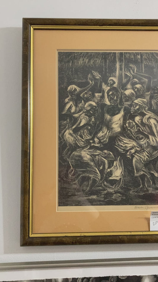 Vintage Marion Greenwood 1951 “Voodoo Ritual” Lithograph Framed Print