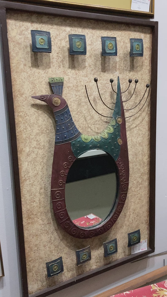 Vintage Scandinavian Folk Bird Style Tole Wall Mirror Art