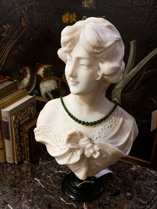 Vintage Graduated Green Nephrite Stone Bead Elongated Necklace
