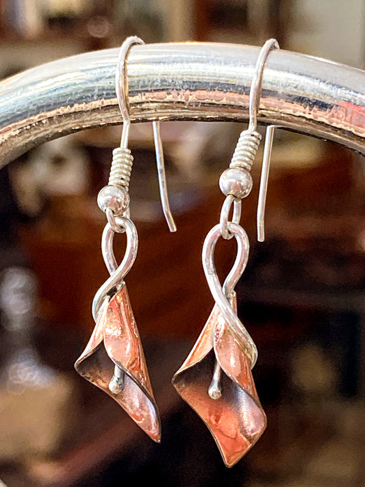 Artisan Stuart Nye Sterling Silver Copper Lily French Drop Dangle Earrings