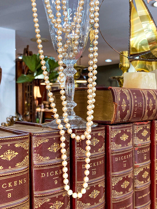 Vintage Yellow Gold Plated Silver Hand Knotted Extra Long Pearl Necklace