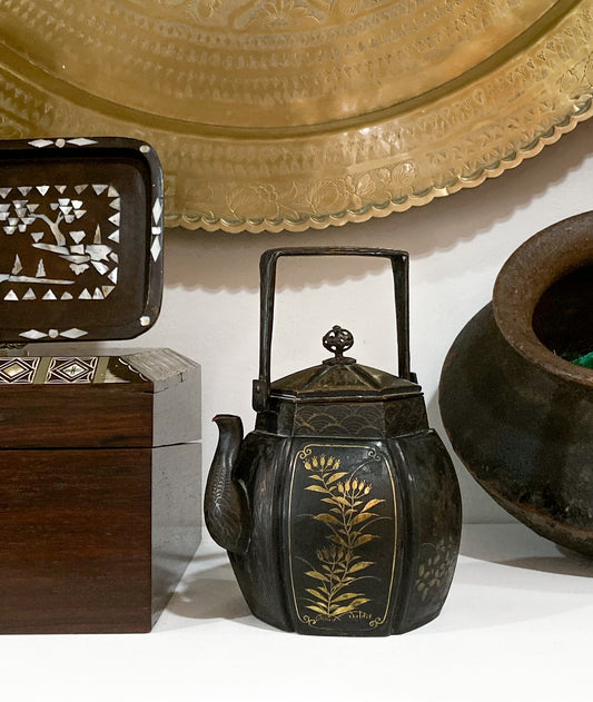 19th Century Japanese Meiji Period Mixed Metal Bronze Small Teapot Kettle