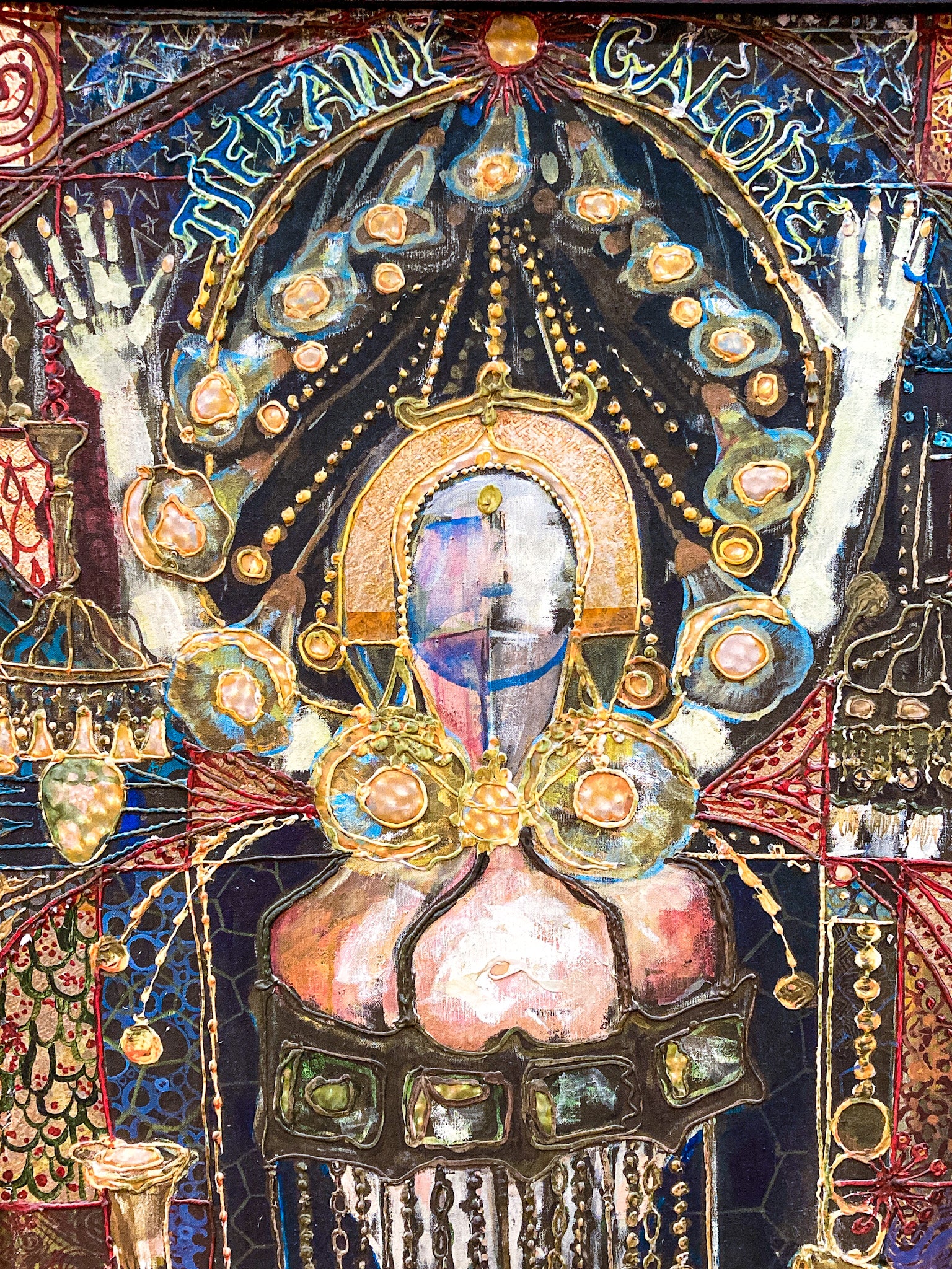 If you were around to remember the heyday of Lorain Ave Antiquing, you may remember the icon, Bernice Kent. This mixed-media portrait recently came in of Bernice Kent in a stylized Tiffany-window with references to lamps and windows. "Tiffany Galore" can be seen at the top of the piece. Bernice seems to be adorned in an ensemble of glass. Artist unknown, this piece is a very unique piece of Cleveland history that references our historic and current love for old, beautiful things!